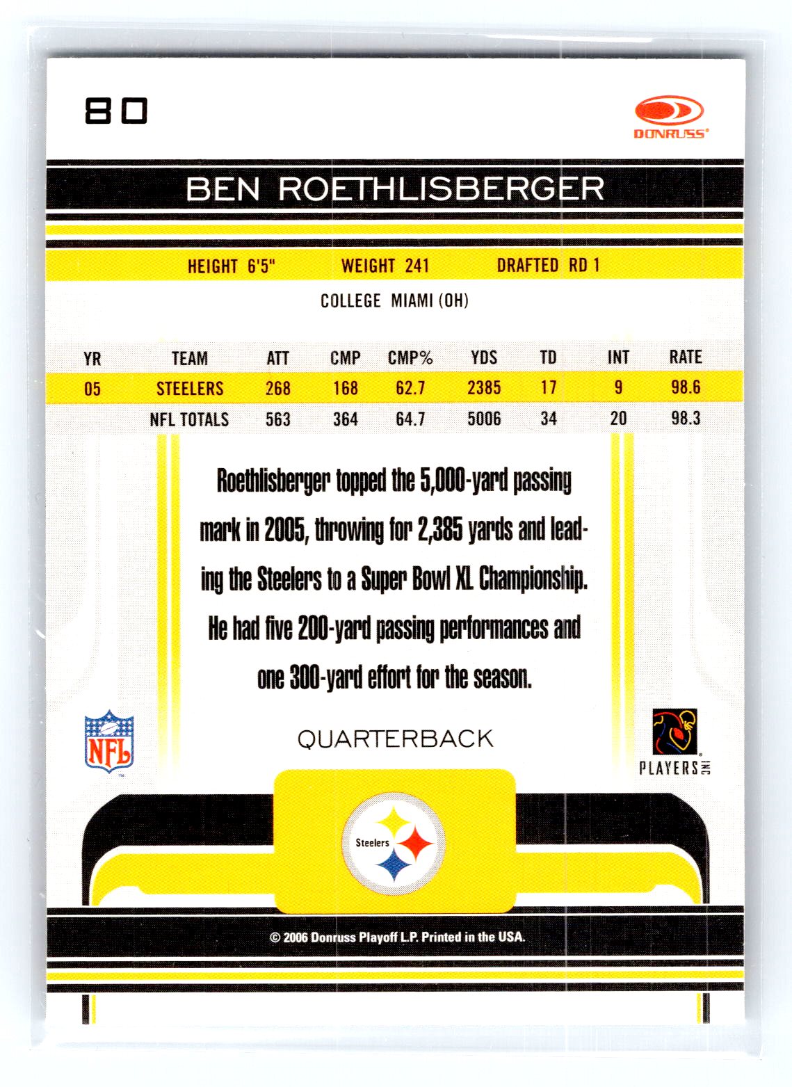 This is a really nice example of a 2006 Donruss Gridiron Gear #80 Ben Roethlisberger .