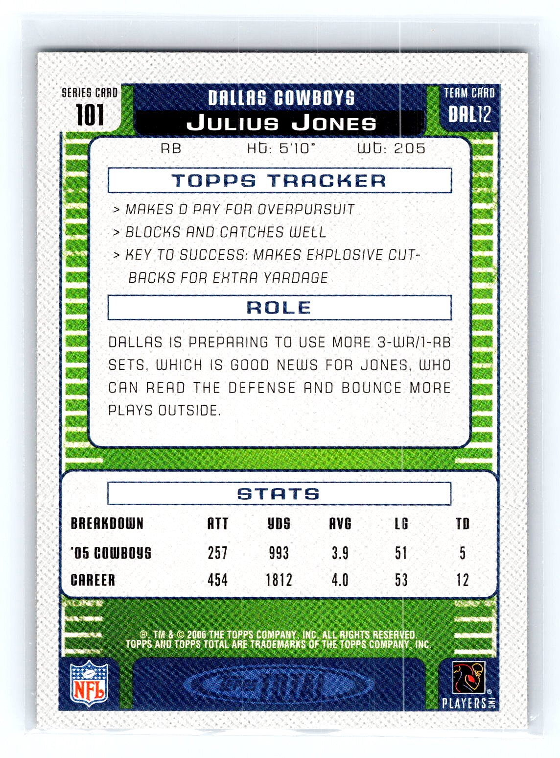 This is a really nice example of a 2006 Topps Total #101 Julius Jones .