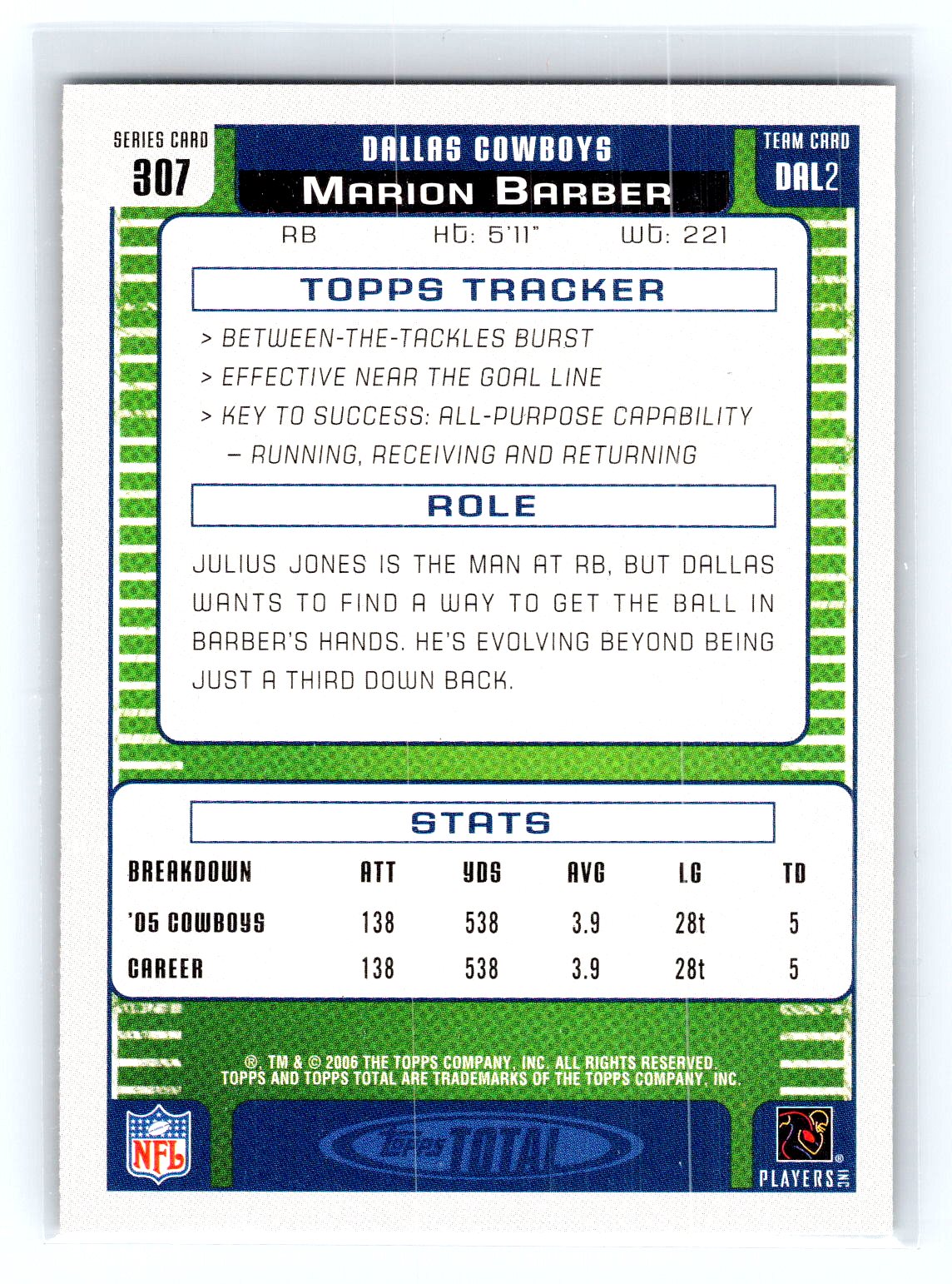 This is a really nice example of a 2006 Topps Total #307 Marion Barber .