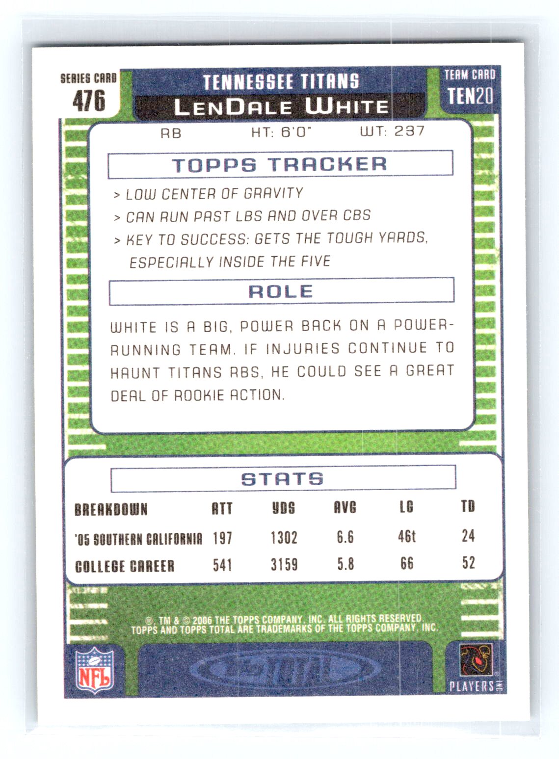 This is a really nice example of a 2006 Topps Total #476 LenDale White .
