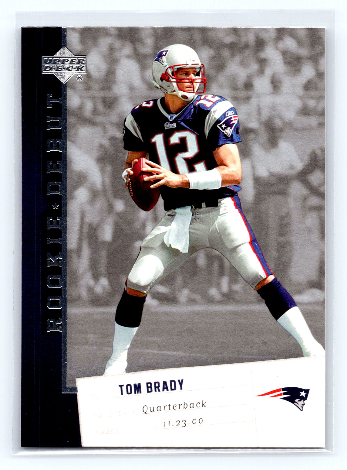 This is a really nice example of a 2006 Upper Deck Rookie Debut #57 Tom Brady .