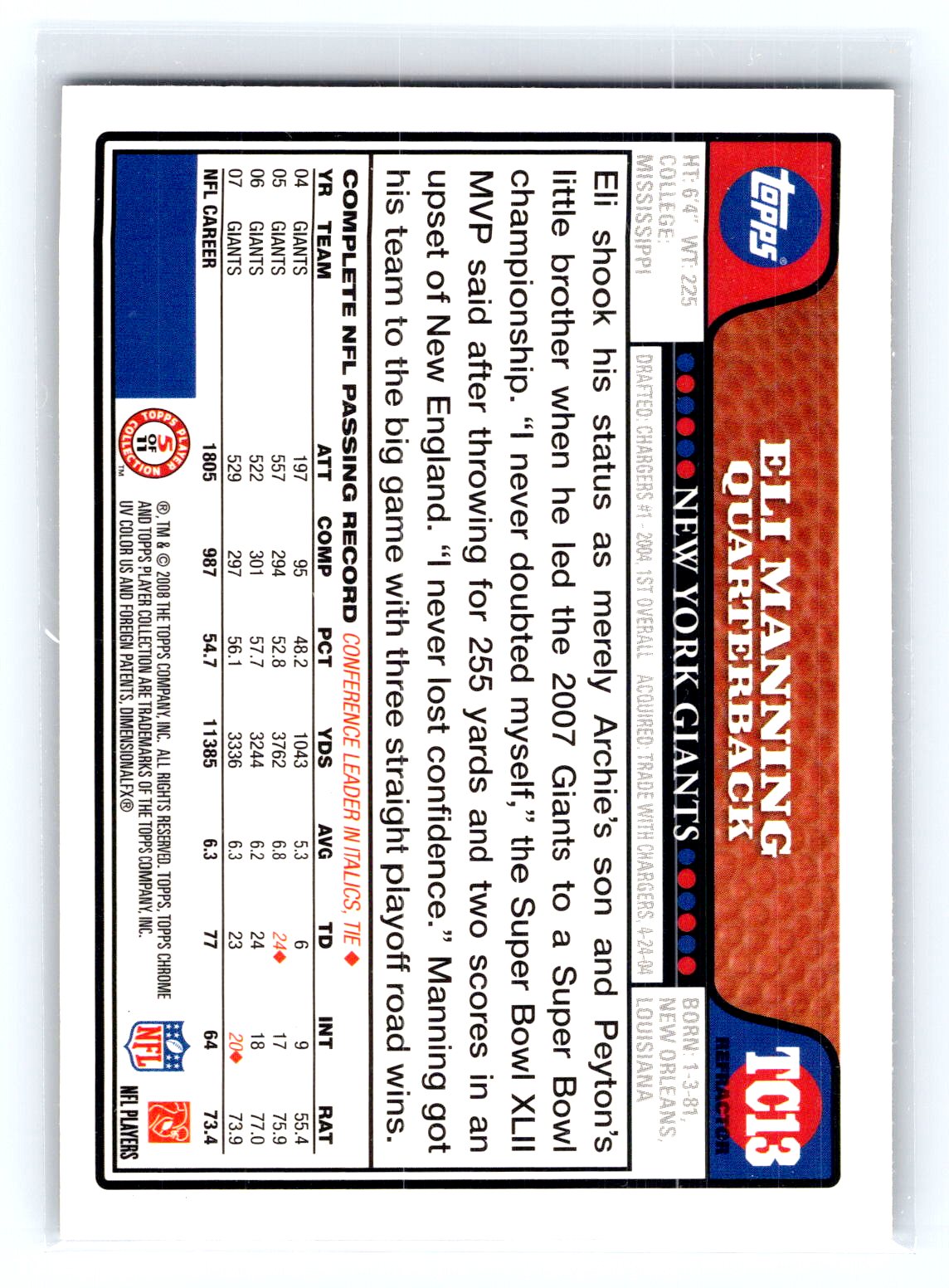 This is a really nice example of a 2008 Topps Chrome #TC13 Eli Manning .