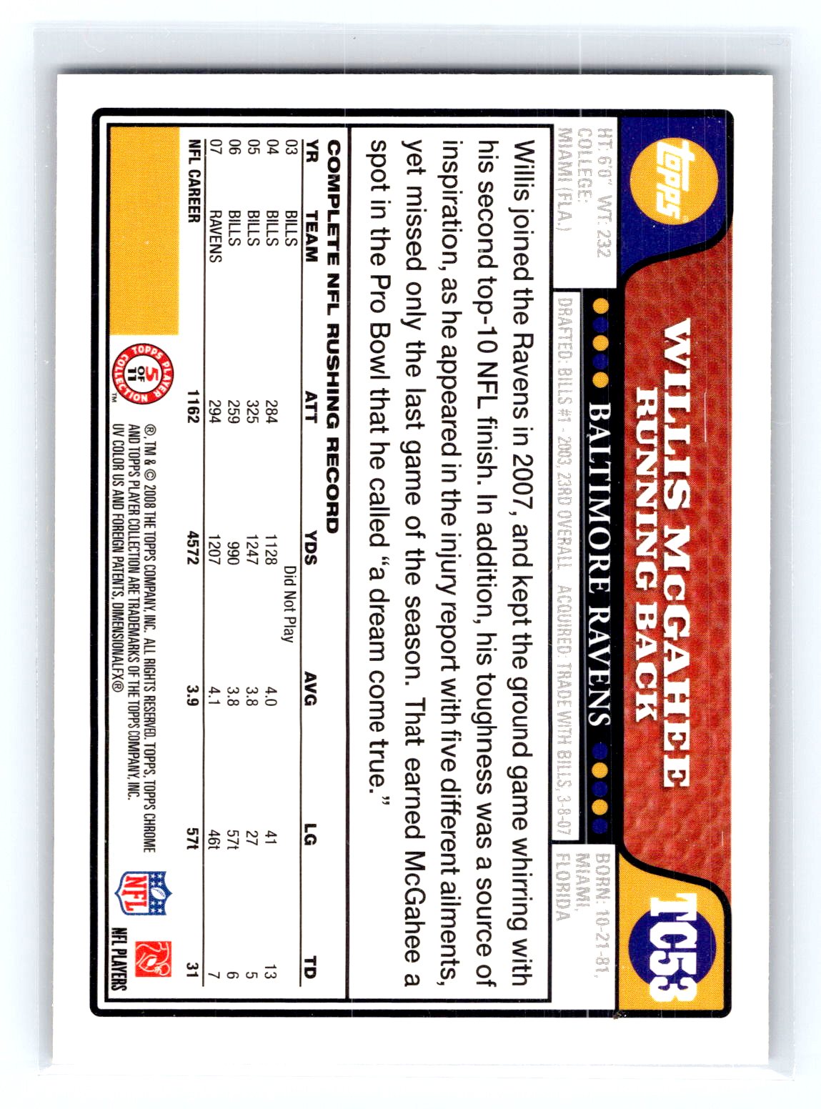 This is a really nice example of a 2008 Topps Chrome #TC53 Willis McGahee .