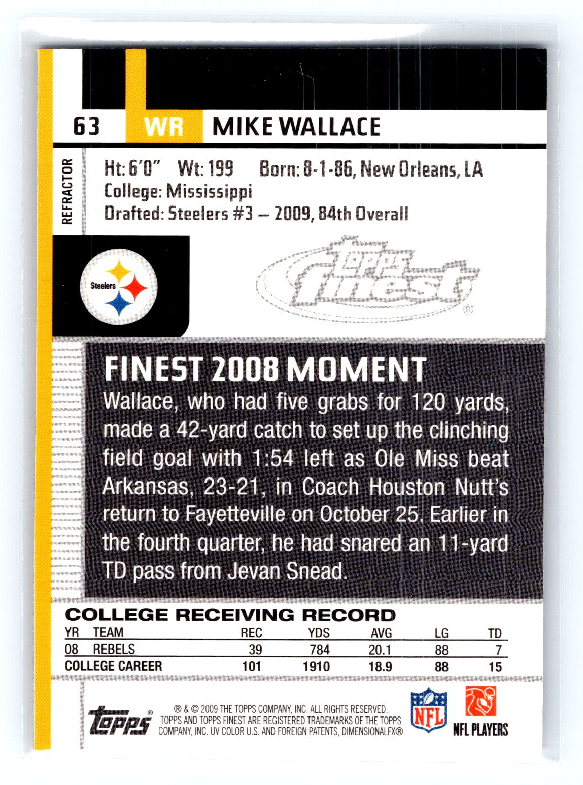 This is a really nice example of a 2009 Finest #63 Mike Wallace .