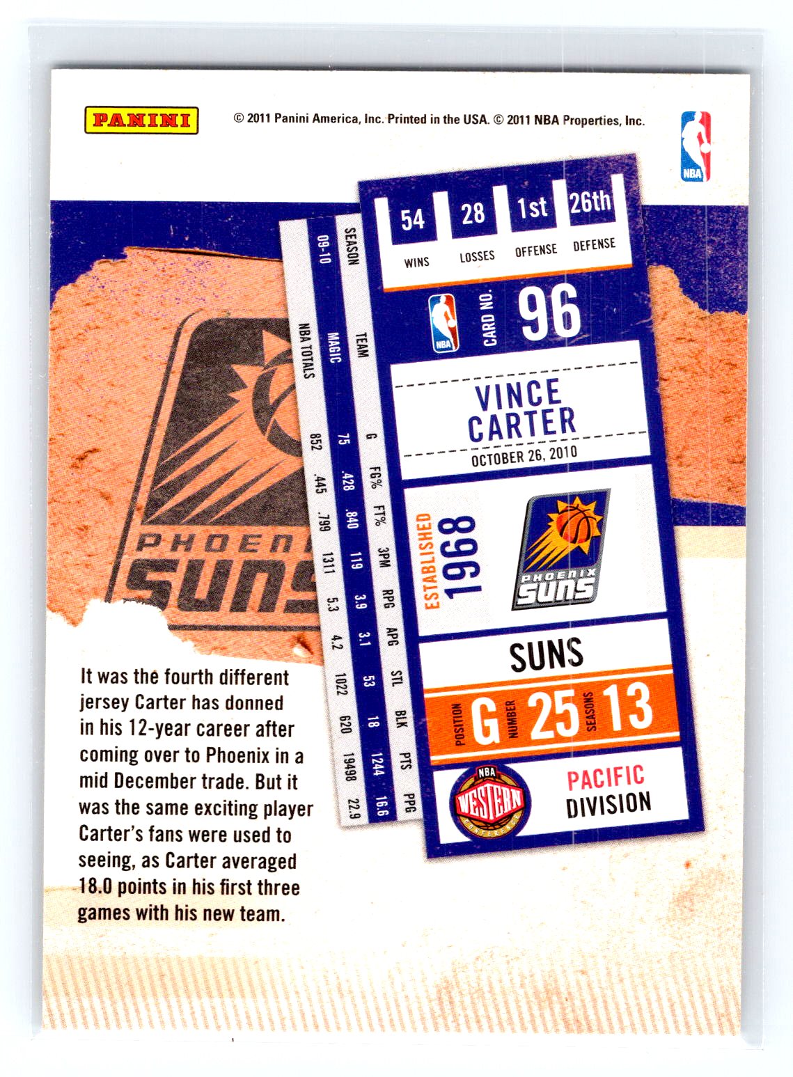 In 2010 Vince Carter played for the Phoenix Suns.