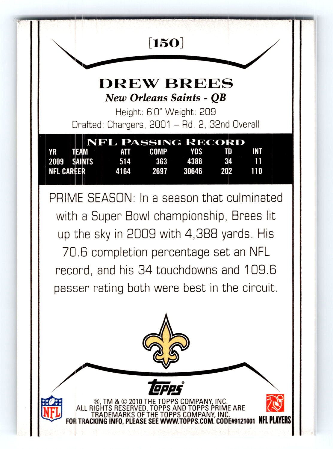 This is a really nice example of a 2010 Topps Prime #150 Drew Brees .