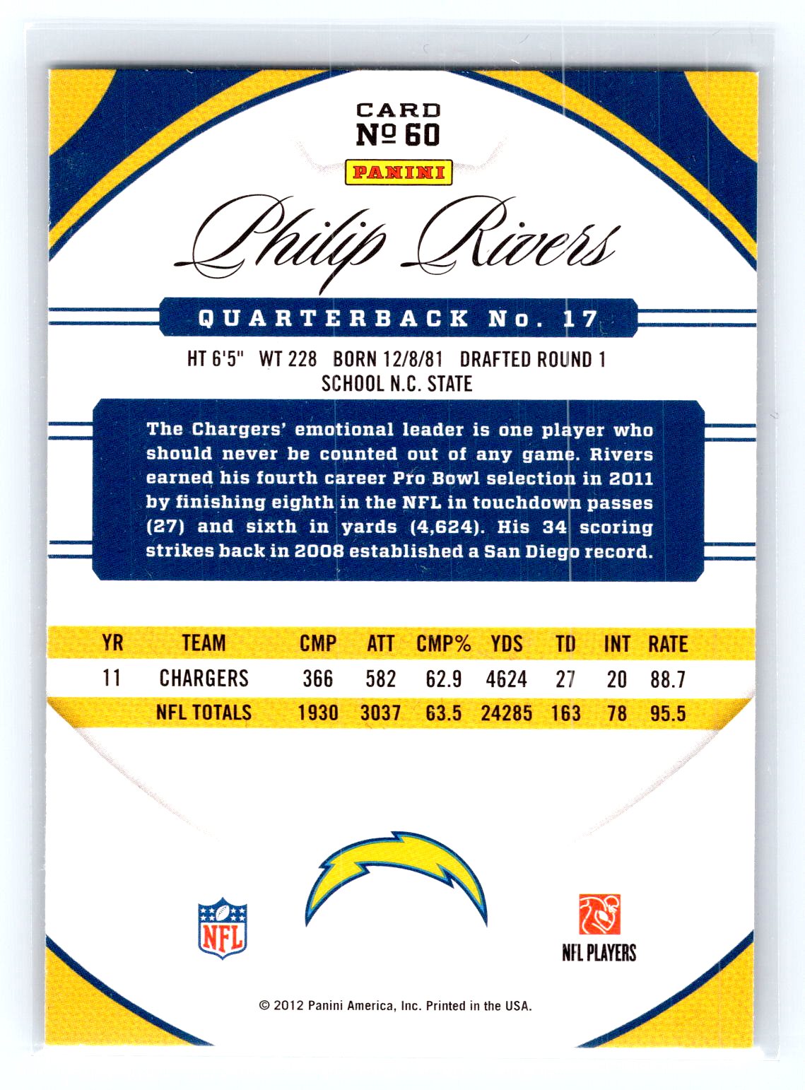 This is a really nice example of a 2012 Panini Certified #60 Philip Rivers .