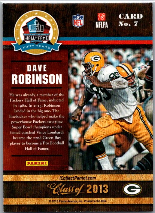 2013 Panini Pro Football Hall of Fame #7 Dave Robinson
